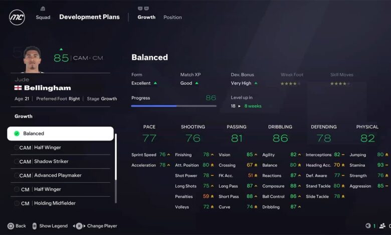 - Gelişim Süresi: Bazı gelişim planları daha hızlı sonuç verirken, bazıları daha uzun vadeli olabilir. Oyuncunun yaşına, potansiyeline ve mevcut yeteneklerine göre doğru dengeyi kurun.