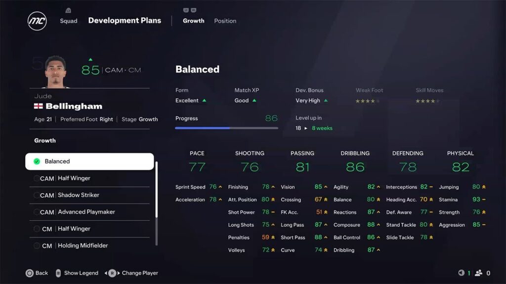 - Gelişim Süresi: Bazı gelişim planları daha hızlı sonuç verirken, bazıları daha uzun vadeli olabilir. Oyuncunun yaşına, potansiyeline ve mevcut yeteneklerine göre doğru dengeyi kurun.
