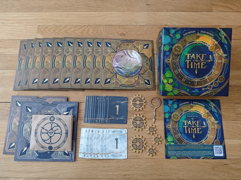 Oyunun bileşenleri ve sanatsal tasarımı da bu genel çekiciliğe katkıda bulunur. Genellikle canlı renkler, davetkar illüstrasyonlar ve dayanıklı malzemeler kullanılarak üretilen Take Time, görsel olarak da hoş bir deneyim sunar. Oyun kutusu ve içeriği, sade ama etkili bir estetiğe sahip olup, oyunun genel felsefesini yansıtır. Bu sayede, oyun sadece bir etkinlik değil, aynı zamanda masanızda estetik bir obje olarak da yerini alır.